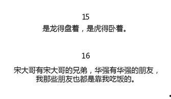 亲爱的读者们,你是不是也和我一样,闲暇之余喜欢翻翻那些让人捧腹大笑的娱乐吃瓜经典语录呢?那些或幽默、或讽刺、或深情的句子,仿佛一剂强心针,让我们在忙碌的生活中找到一丝轻松和快乐。今天,就让我带你一起走进这个充满欢乐的世界,盘点那些让人回味无穷的娱乐吃瓜经典语录大全吧!